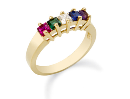Yellow gold mother's ring with 3 - 8 genuine or synthetic stones.