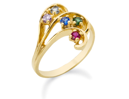 Yellow gold mother's ring with 3 - 8 genuine or synthetic stones.