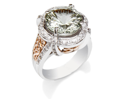 Diamond and mint green quartz white and rose gold ladies ring.