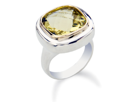 Sterling silver and yellow gold yellow quartz ring.